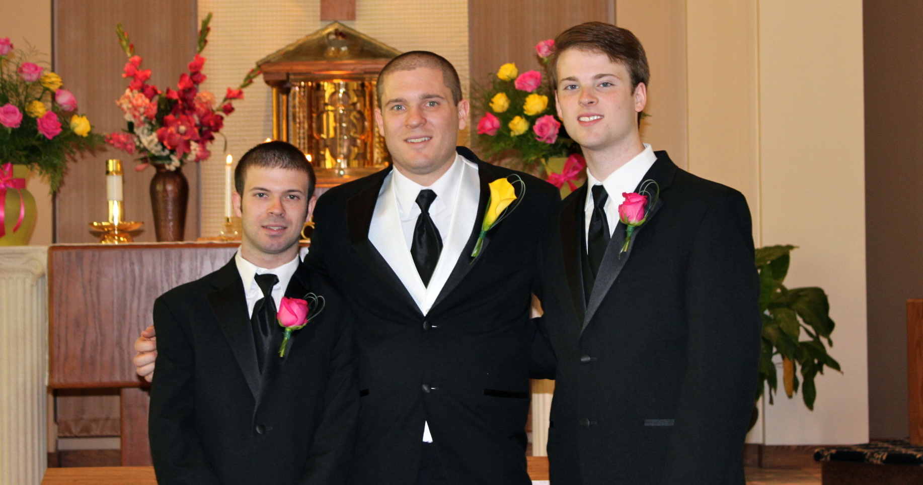Janelle, the bride chose yellow and a deep pink as the Colors of the Day, with the groom sporting the first Calla Lilly buttoniere I recall ever seeing. The ceremony was bright and joyous, and officiated most appropriately by Msgr. McGouth at St. Lawrence’s R.C. Church in South Williamsport. The happy couple seemed happiest when they exchanged vows on the First Day of the rest of their lives.