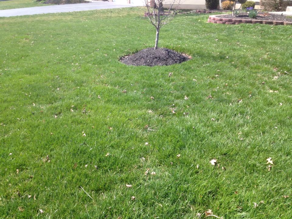 Get your lawn clean-up done! This is what my lawn looked like pre-cleanup. The picture heading this post shows how it looked after three hours of raking, mowing, and trimming.