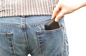 The man in sheep’s clothing slips a hand into a woman’s pocketbook and pulls out a wad of cash.